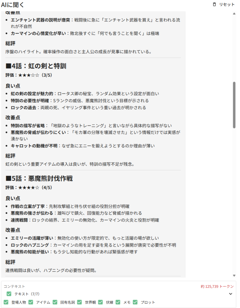 AIに渡す本文や設定は選べます。本文が長すぎると渡す前に要約されます。当然コストがかかるので注意。使用料は渡すトークン量から予想してください。
