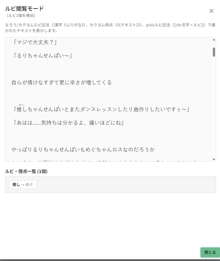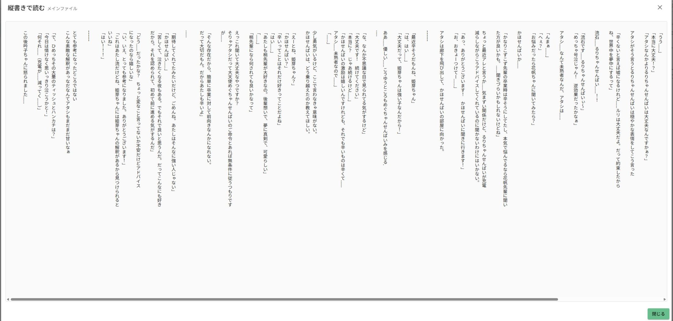以下から機能を紹介します。既に公開済のかほひめSSを使って機能の紹介をしますが、このかほひめSS自体はAI機能を使って書いたわけではありません。