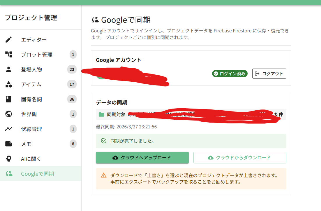 GoogleアカウントでFirebaseストレージに保存できる。そんなユーザーもいないため今のところ無料。無制限に保存できるわけではない、確か5MBとかそれぐらいだったはず。でも本数冊程度は保存できるよ。