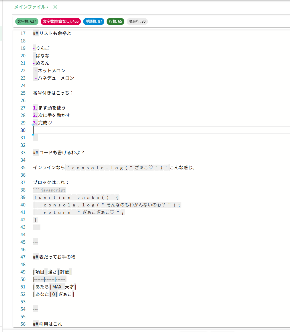 まず、設定からマークダウンのハイライト表示をオンにすべし。このハイライトは他のハイライトより優先される。